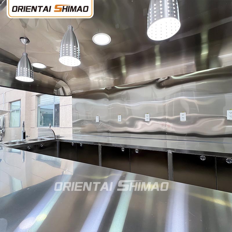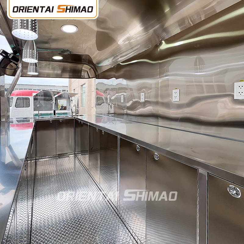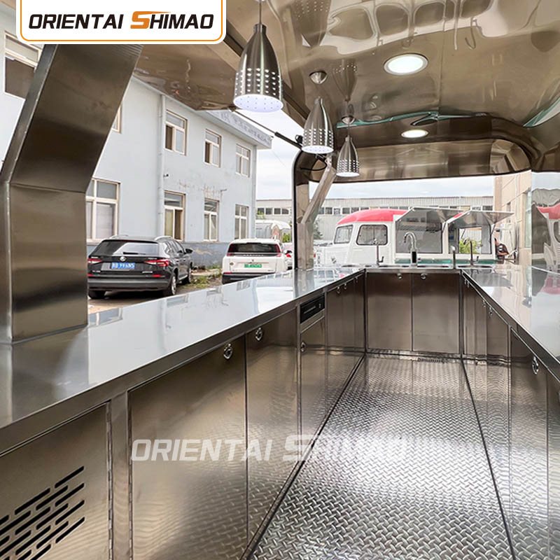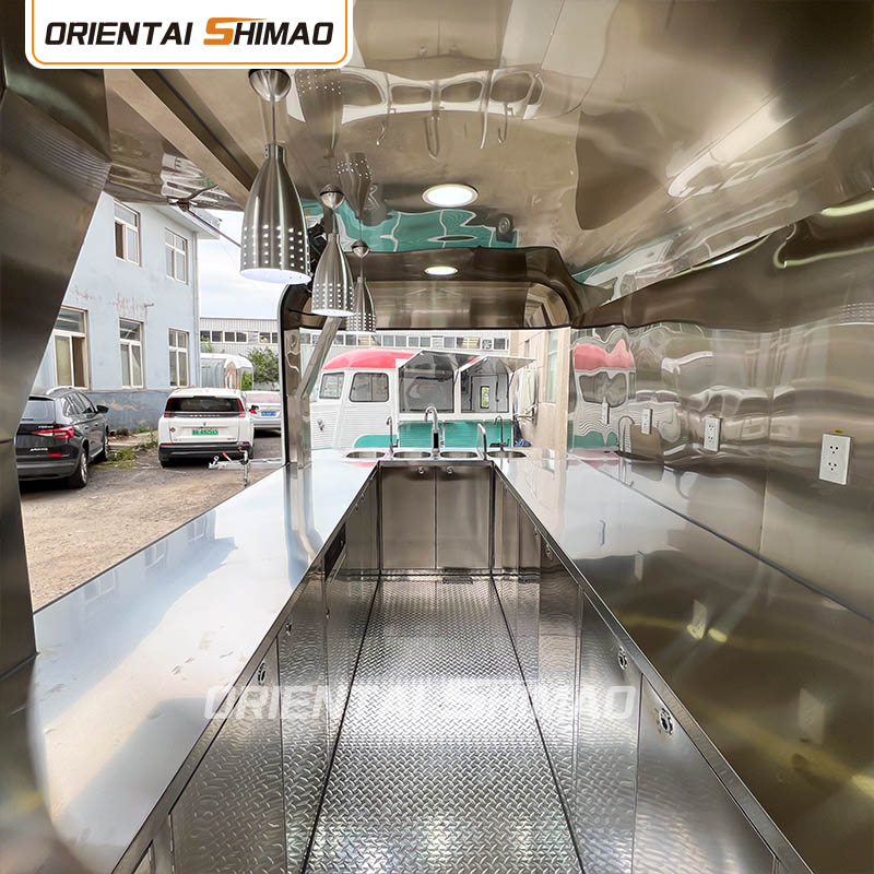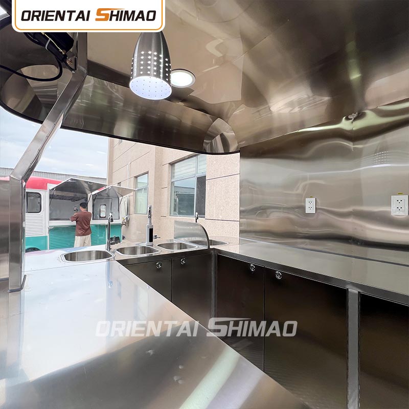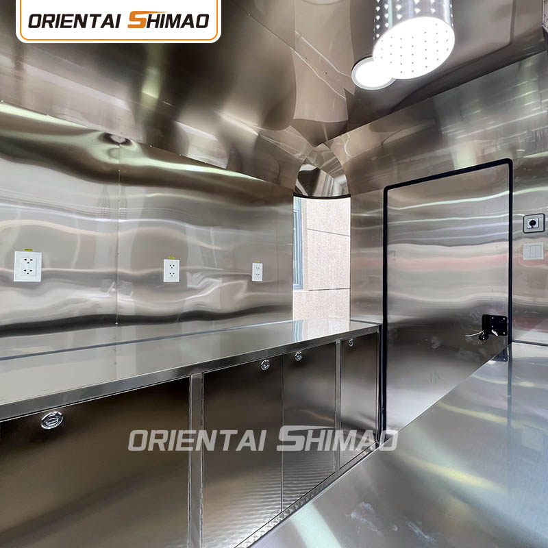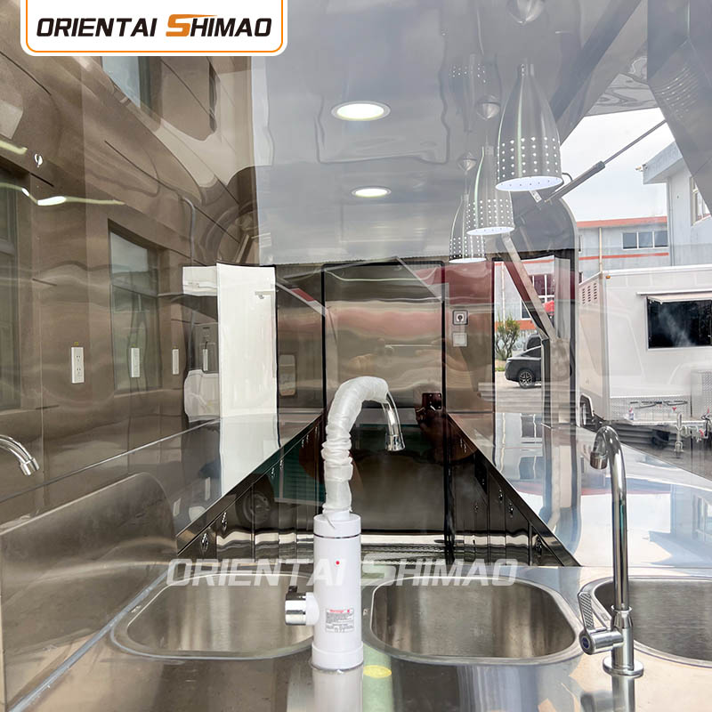 Interno in acciaio inossidabile: l'interno è realizzato in acciaio inossidabile, garantendo un interno resistente e durevole, facile da pulire e mantenere e conforme agli standard di igiene alimentare. L'uso dell'acciaio inossidabile non solo migliora la durata del food truck, ma garantisce anche l'igiene e la sicurezza del processo di preparazione del cibo.