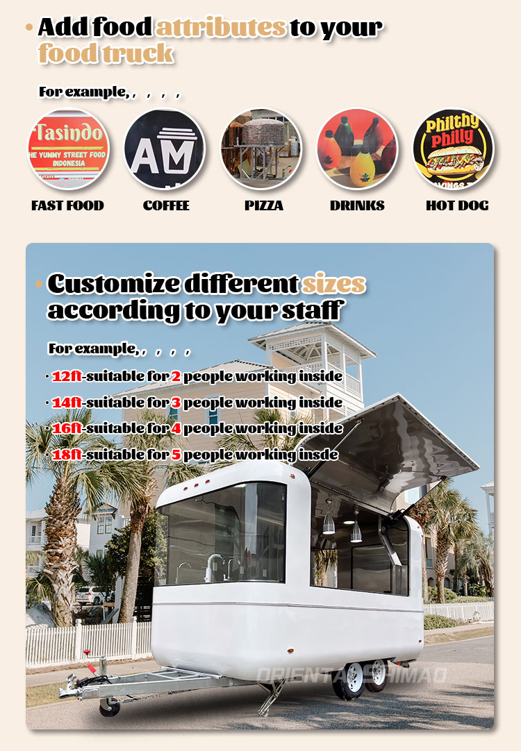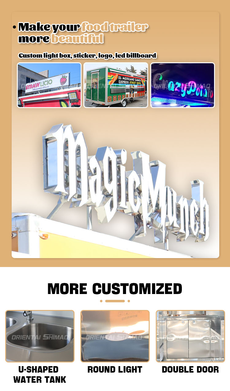 Modellazione e stile: la modellazione e lo stile estetico del food truck sono un fattore importante per attirare i clienti. Può essere personalizzato in base all'immagine del marchio dei clienti, alle caratteristiche aziendali o alle preferenze personali, come design aerodinamico, stile retrò, semplicità moderna e così via.