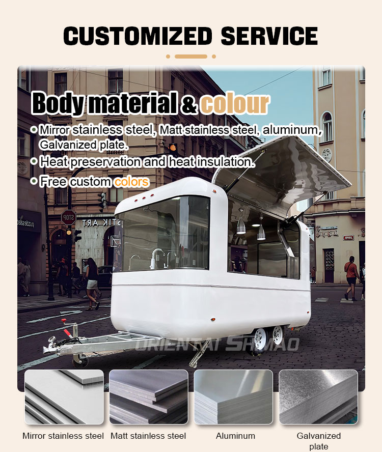 Materiali del corpo: scegli materiali ad alta resistenza, resistenti alla corrosione, facili da pulire e rispettosi dell'ambiente, come acciaio inossidabile, lega di alluminio, ecc., per garantire stabilità, durata e sicurezza del corpo del camion di cibo.