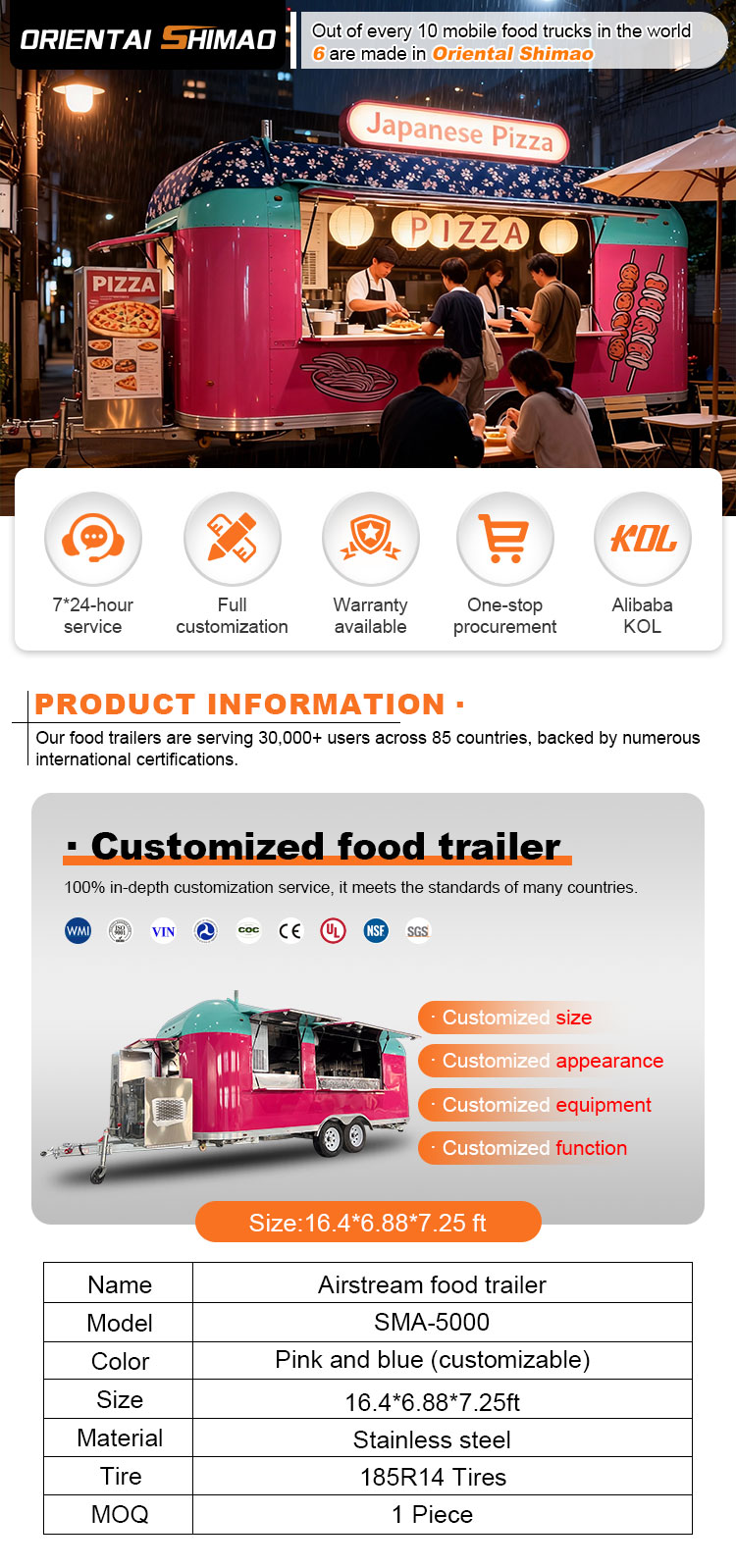 Per il materiale principale, abbiamo scelto l'acciaio inossidabile 304 di alta qualità, noto per la sua eccellente resistenza alla corrosione e l'eccellente durata, e può mantenere prestazioni stabili in una varietà di condizioni ambientali, garantendo che i nostri prodotti per rimorchi per catering alimentare possano mantenere la loro eccellente qualità e funzionalità anche a lungo termine e affrontare una serie di sfide. L'eccellente resistenza dell'acciaio inossidabile 304 alla corrosione, in modo che il camion non sia facilmente influenzato dall'ossidazione o dalla ruggine, il che ne prolunga notevolmente la durata. L'eccellente resistenza alla corrosione dell'acciaio inossidabile 304 rende il camion meno suscettibile all'ossidazione o alla ruggine, prolungandone notevolmente la durata.