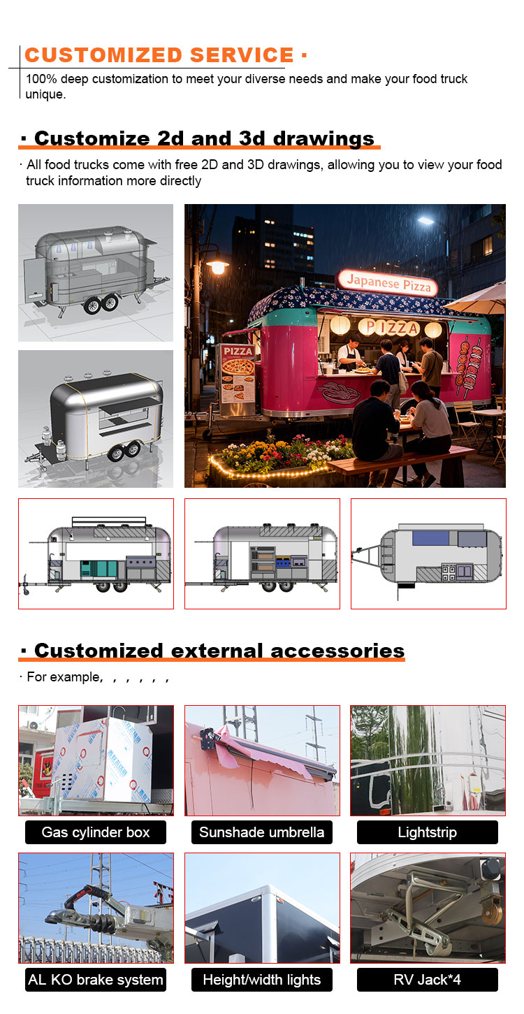 Rimorchio per alimenti Carrello portavivande per alimenti Cucina mobile Catering Rimorchio per alimenti di strada Concept Truck per alimenti