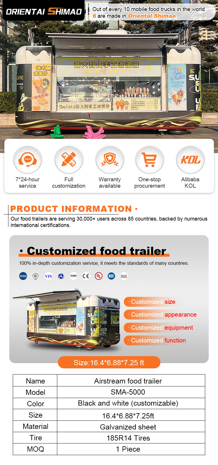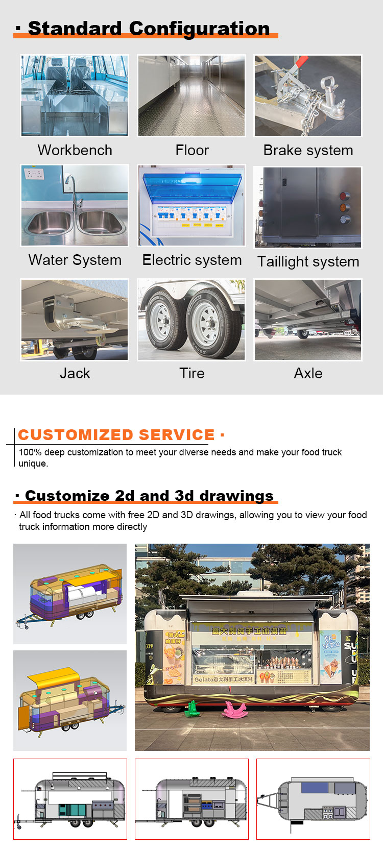 Rimorchio per alimenti Carrello portavivande per alimenti Cucina mobile Catering Rimorchio per alimenti di strada Concept Truck per alimenti