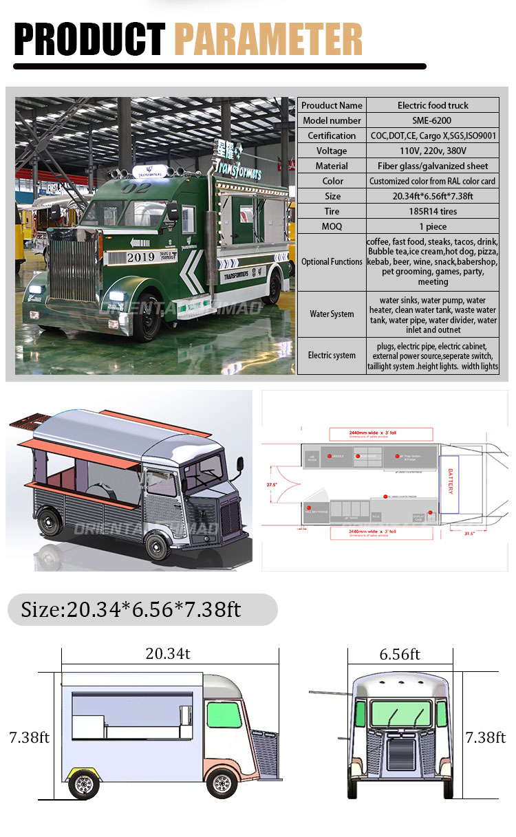 Supporto per furgoni alimentari elettrici a vendita a caldo varie soluzioni personalizzate, personalizzazione delle dimensioni, personalizzazione del logo, personalizzazione interna, ecc.