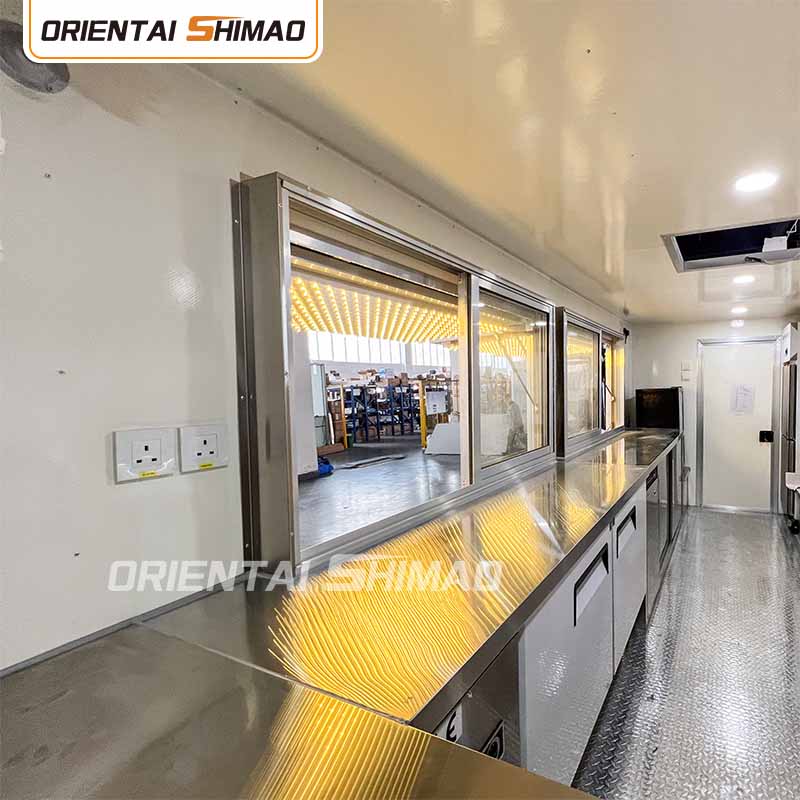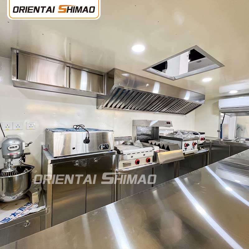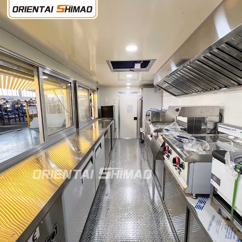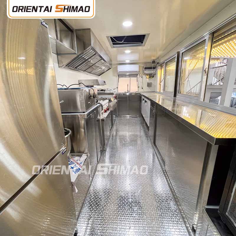 Interno in acciaio inossidabile: l'interno è realizzato in acciaio inossidabile, garantendo un interno resistente e durevole, facile da pulire e mantenere e conforme agli standard di igiene alimentare. L'uso dell'acciaio inossidabile non solo migliora la durata del food truck, ma garantisce anche l'igiene e la sicurezza del processo di preparazione del cibo.