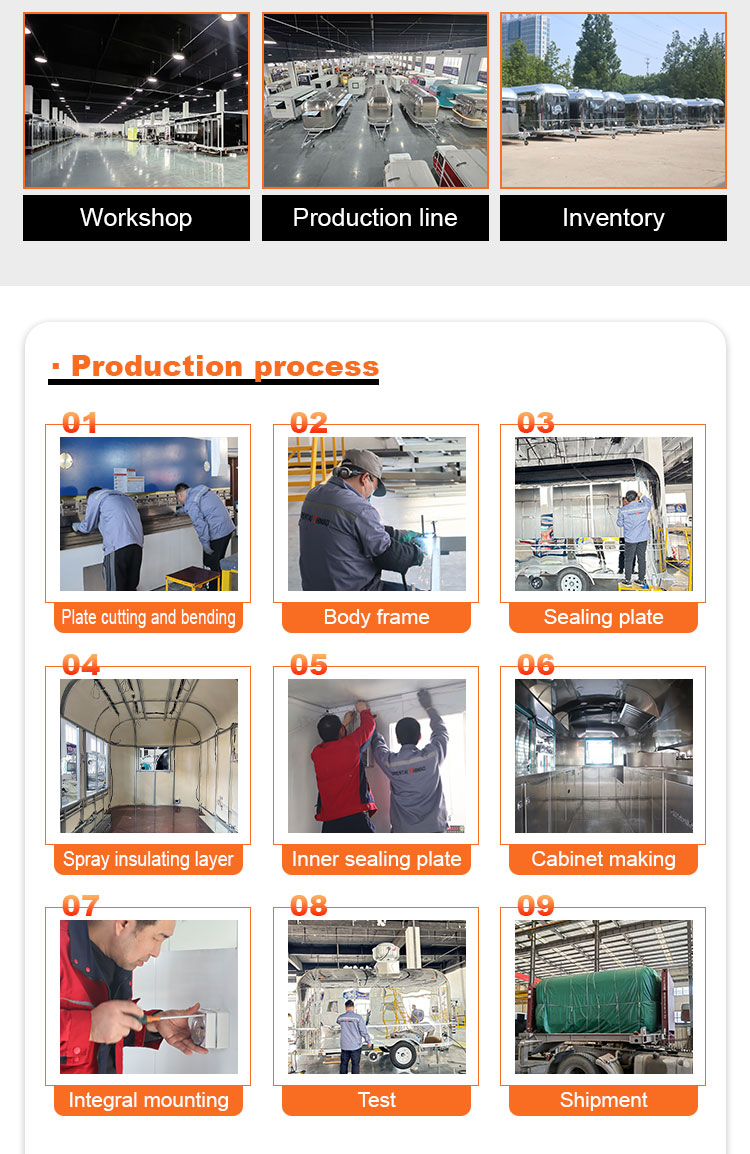 In termini di trattamento superficiale, abbiamo adottato un processo di lucidatura a specchio fine, che non solo conferisce alla superficie del Food Van una lucentezza molto elevata, ma lo rende anche resistente alle impronte digitali e alle sbavature. Ciò significa che durante l'uso quotidiano, l'aspetto del Food Van può rimanere luminoso come nuovo per lungo tempo, riducendo la necessità di frequenti pulizie e manutenzioni. Allo stesso tempo, questo trattamento rende anche la superficie del Food Van più liscia e più facile da eseguire i lavori di pulizia e manutenzione quotidiana, il che offre grande comodità agli utenti.