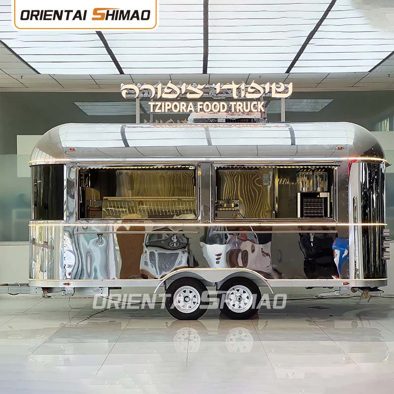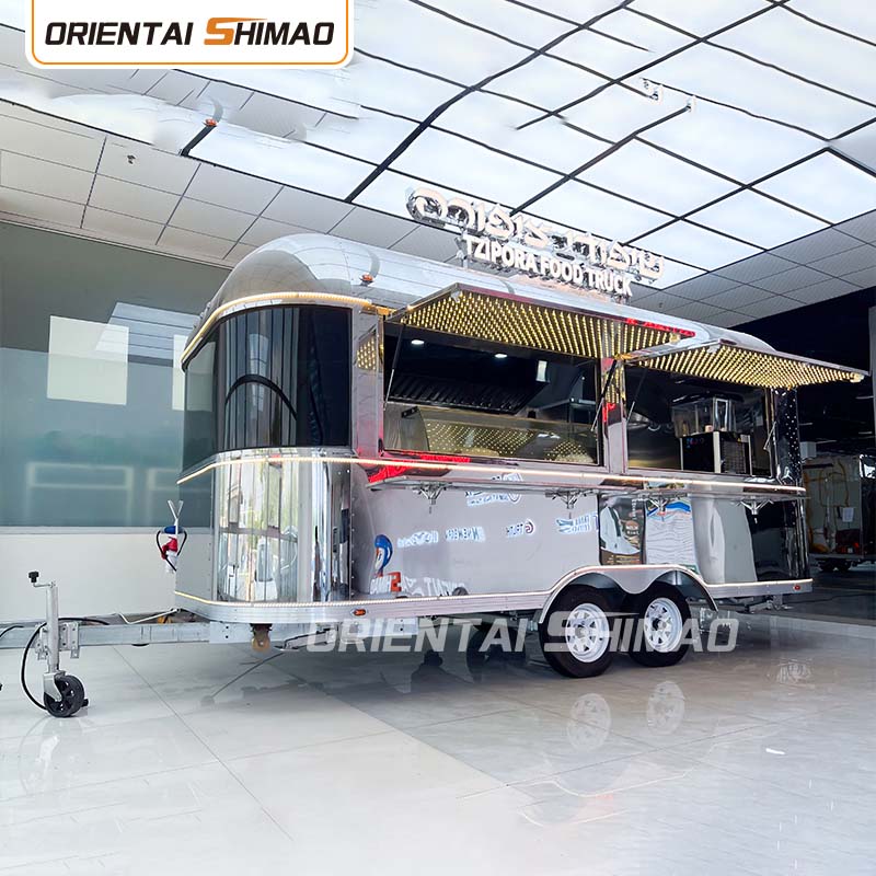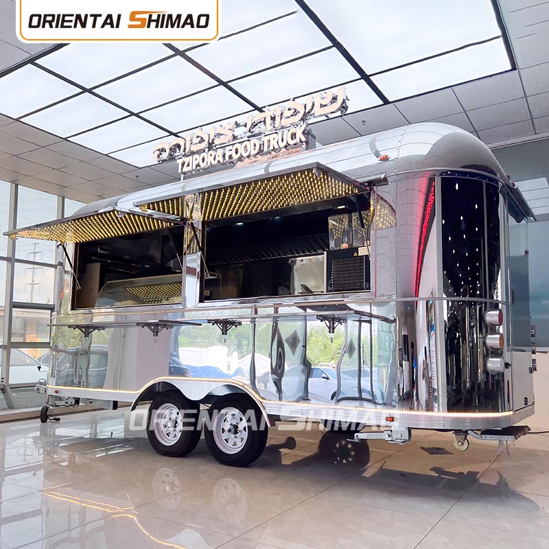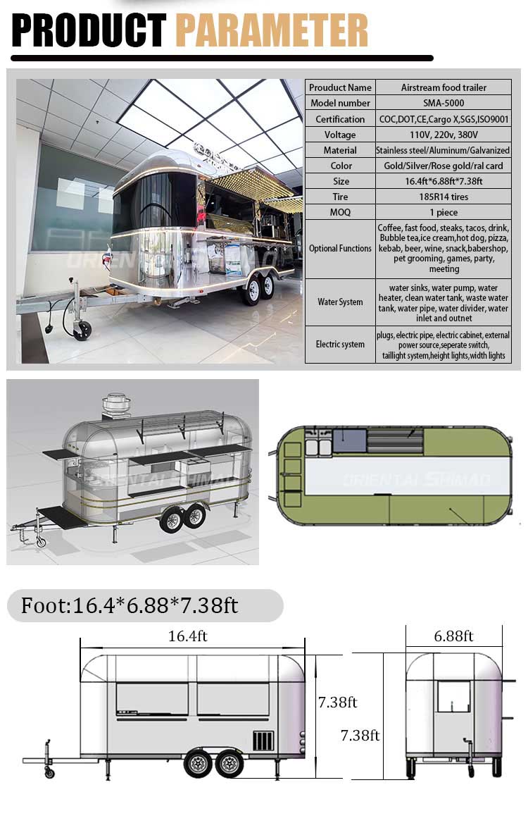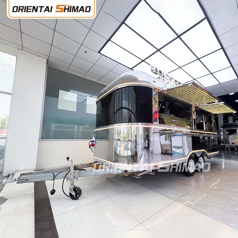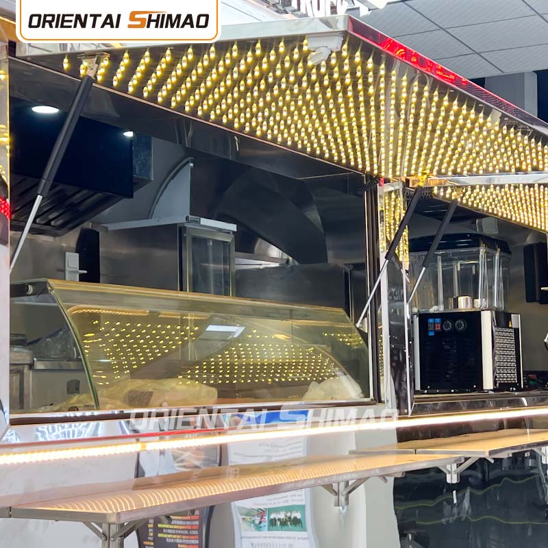 Acciaio inossidabile dorato: l'esterno del food truck è realizzato in acciaio inossidabile dorato di alta qualità. Questo materiale non solo ha un'eccellente resistenza alla corrosione e all'abrasione, ma anche l'aspetto dorato aumenta la bellezza visiva e la sensazione di alta qualità, in modo che il food truck possa risaltare in vari ambienti.