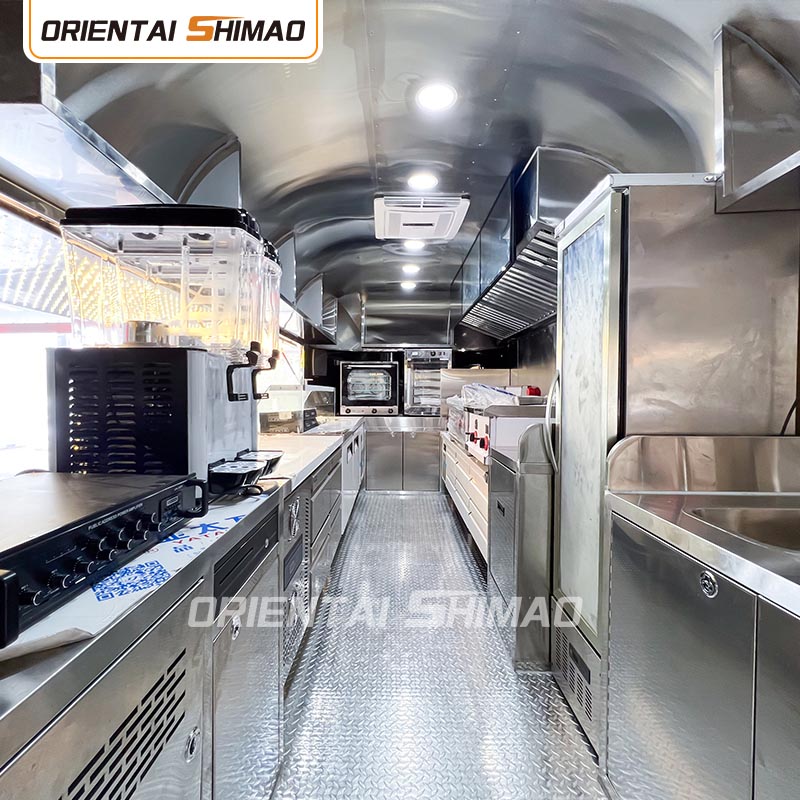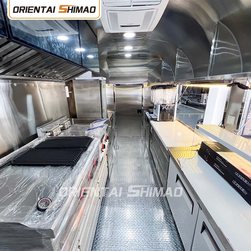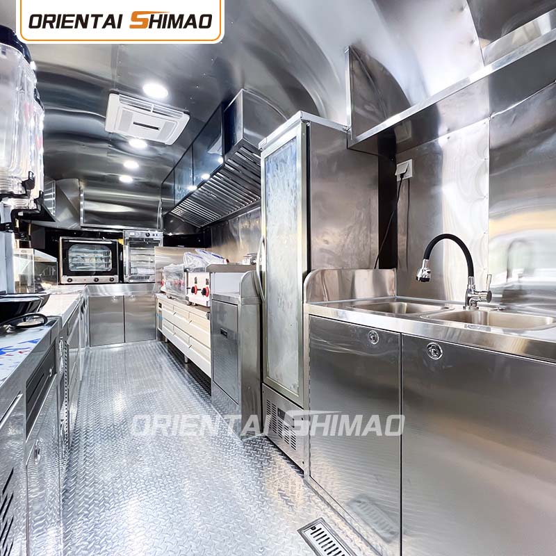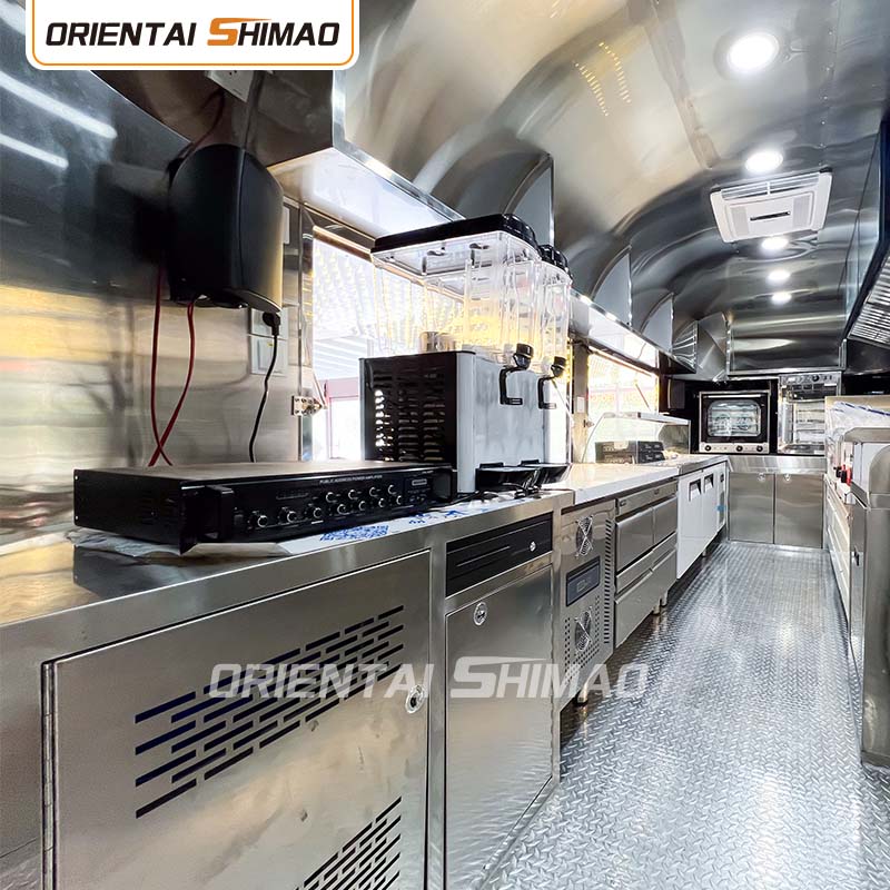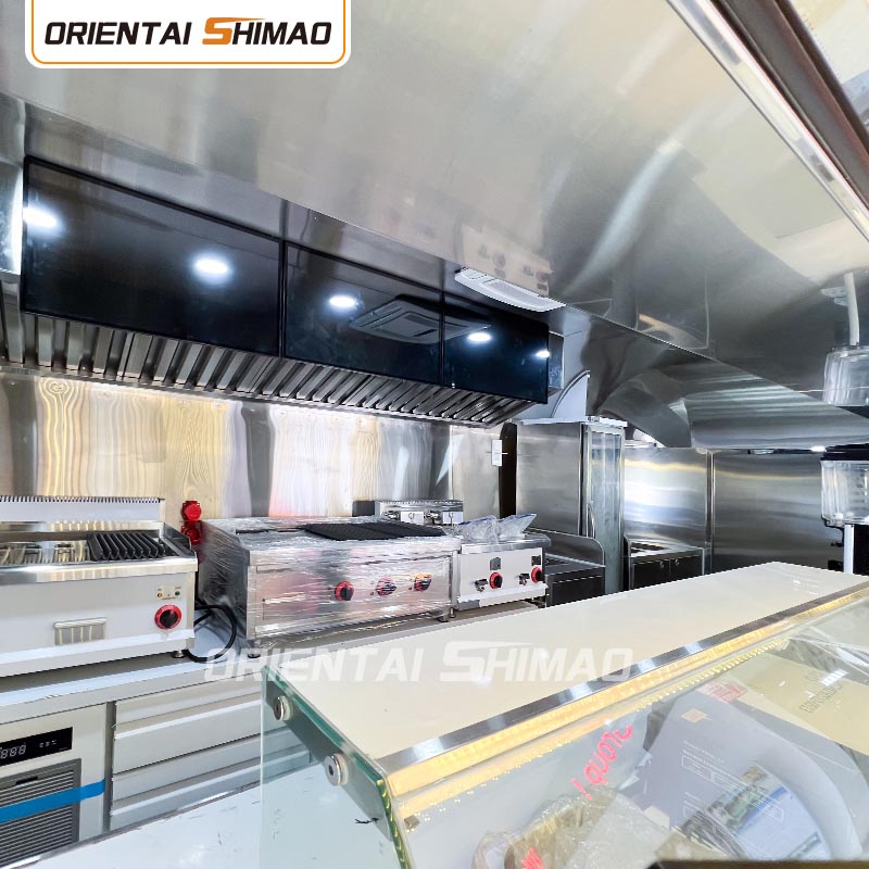 Interno in acciaio inossidabile: l'interno è realizzato in acciaio inossidabile, garantendo un interno resistente e durevole, facile da pulire e mantenere e conforme agli standard di igiene alimentare. L'uso dell'acciaio inossidabile non solo migliora la durata del food truck, ma garantisce anche l'igiene e la sicurezza del processo di preparazione del cibo.