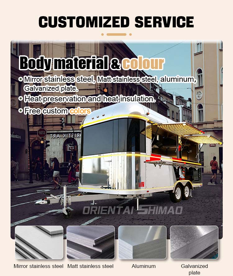 Materiale e processo: scegli materiali di alta qualità e un processo di produzione avanzato per garantire che l'aspetto del food truck sia bello e durevole.