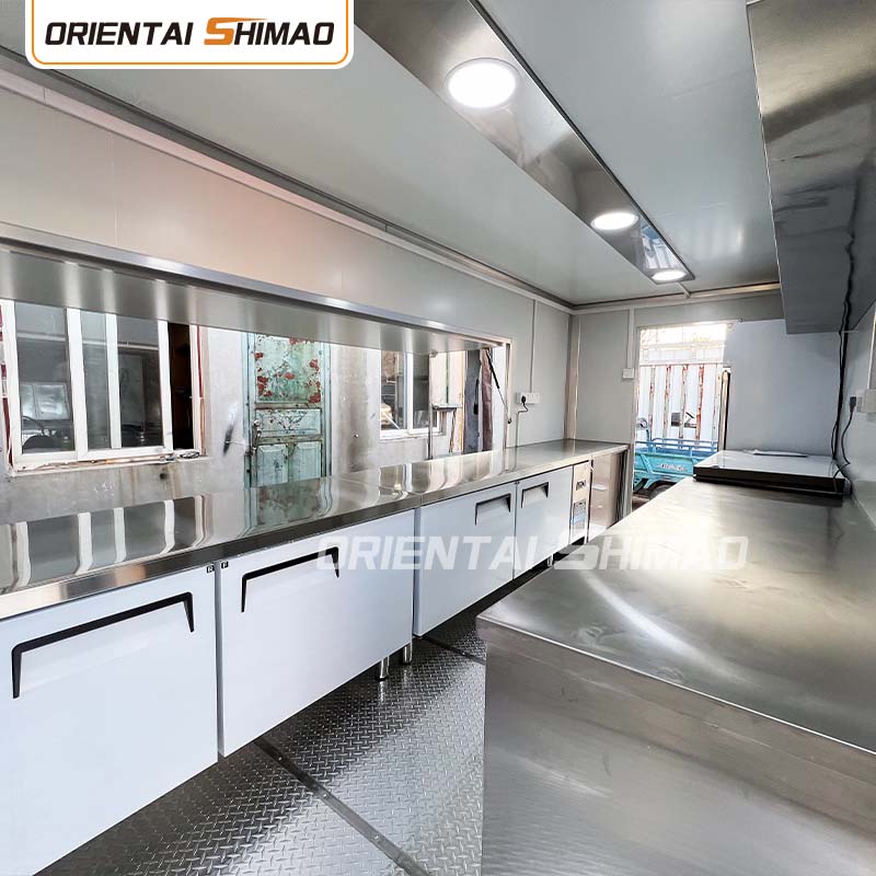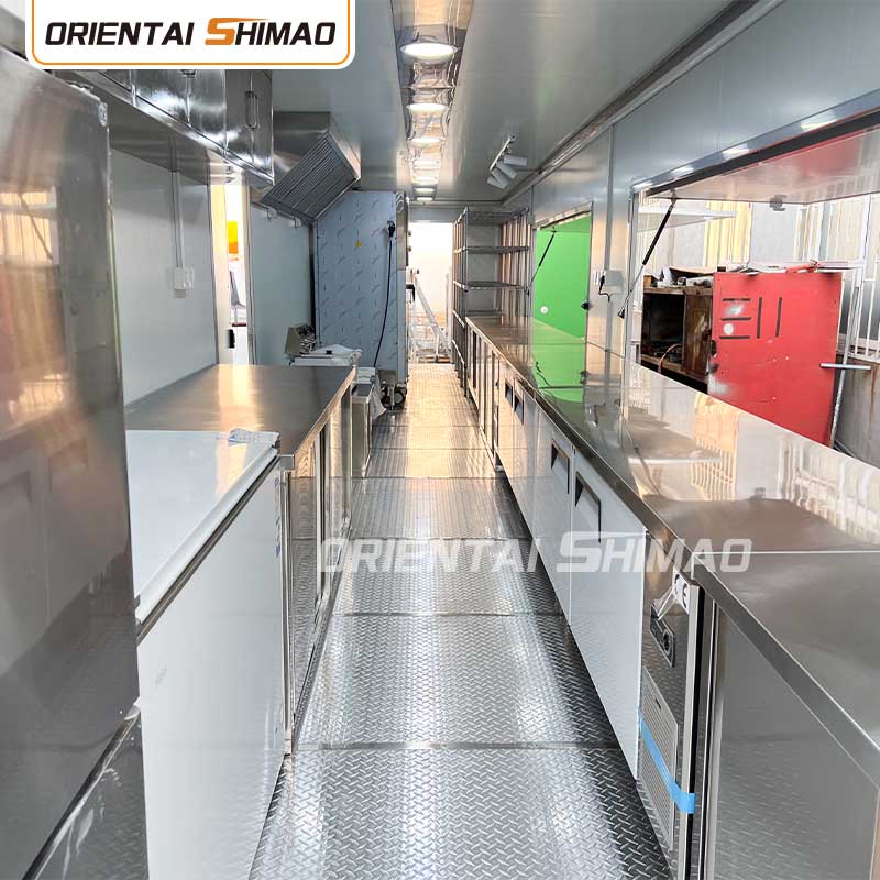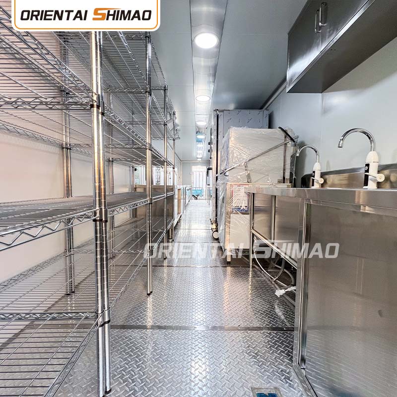 Interno in acciaio inossidabile: l'interno è realizzato in acciaio inossidabile, garantendo un interno resistente e durevole, facile da pulire e mantenere e conforme agli standard di igiene alimentare. L'uso dell'acciaio inossidabile non solo migliora la durata del food truck, ma garantisce anche l'igiene e la sicurezza del processo di preparazione del cibo.