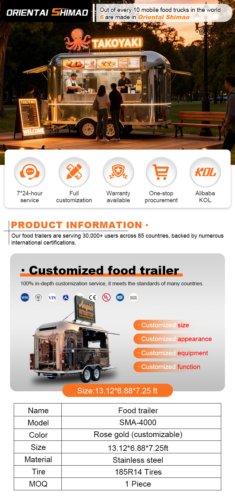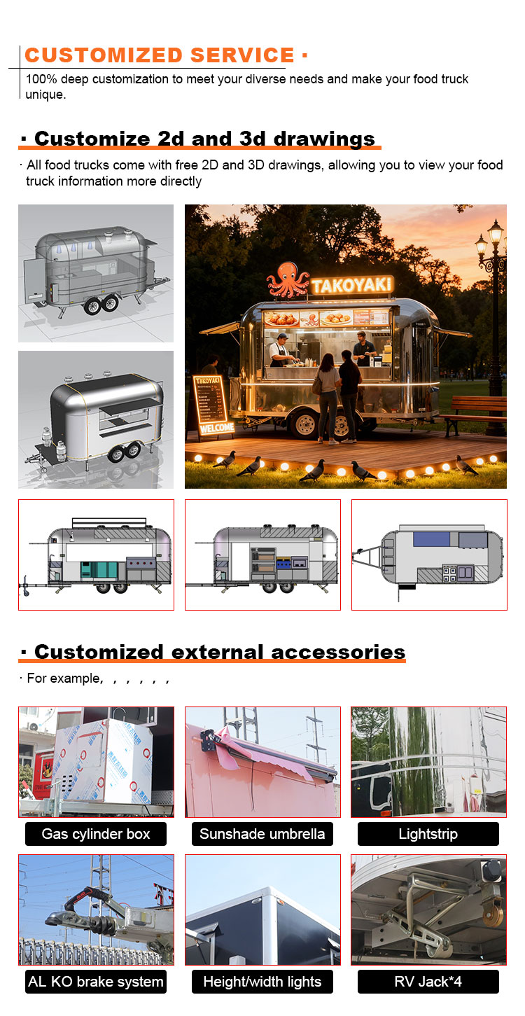 Per il materiale principale, abbiamo scelto l'acciaio inossidabile 304 di alta qualità, noto per la sua eccellente resistenza alla corrosione e l'eccellente durata, e può mantenere prestazioni stabili in una varietà di condizioni ambientali, garantendo che i nostri prodotti per rimorchi per catering alimentare possano mantenere la loro eccellente qualità e funzionalità anche a lungo termine e affrontare una serie di sfide. L'eccellente resistenza dell'acciaio inossidabile 304 alla corrosione, in modo che il camion non sia facilmente influenzato dall'ossidazione o dalla ruggine, il che ne prolunga notevolmente la durata. L'eccellente resistenza alla corrosione dell'acciaio inossidabile 304 rende il camion meno suscettibile all'ossidazione o alla ruggine, prolungandone notevolmente la durata.