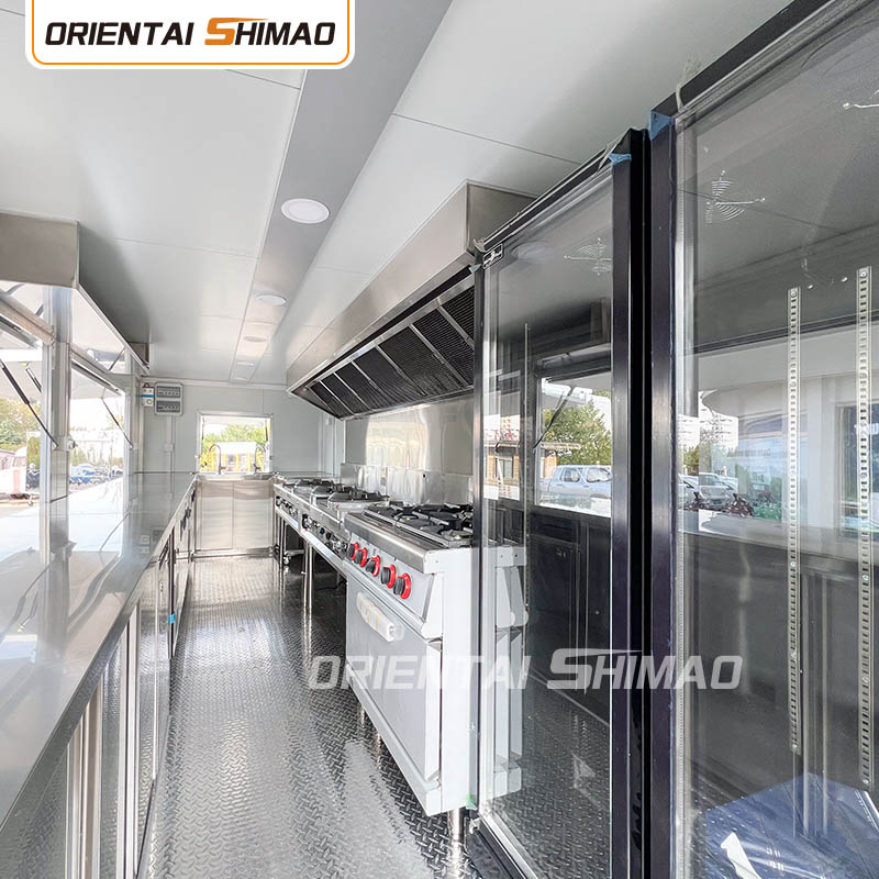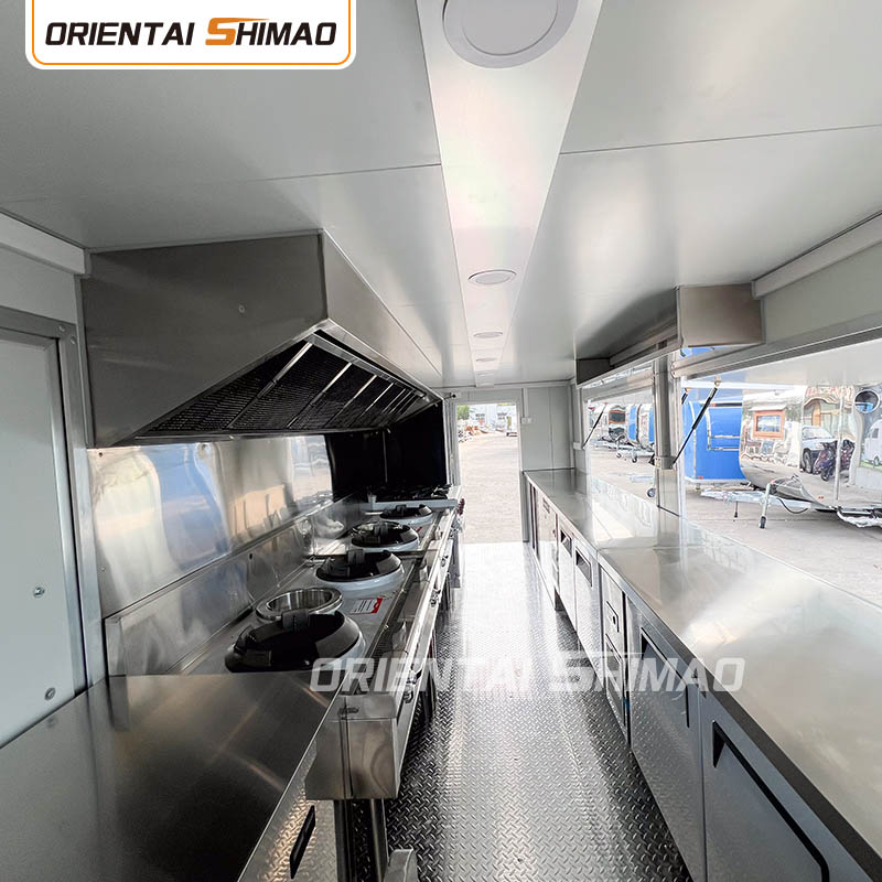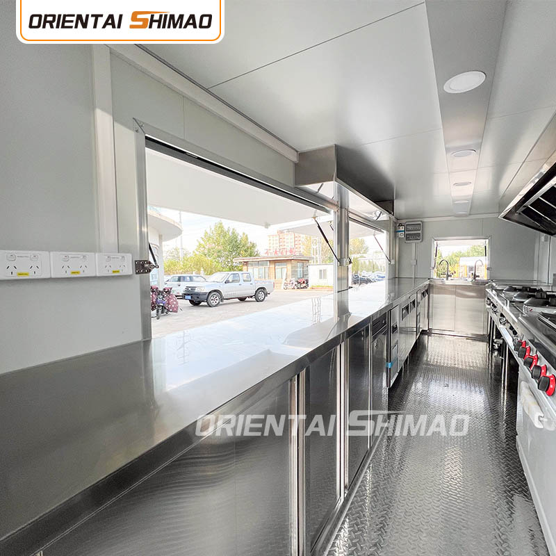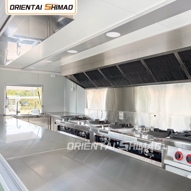 Interno in acciaio inossidabile: l'interno è realizzato in acciaio inossidabile, garantendo un interno resistente e durevole, facile da pulire e mantenere e conforme agli standard di igiene alimentare. L'uso dell'acciaio inossidabile non solo migliora la durata del food truck, ma garantisce anche l'igiene e la sicurezza del processo di preparazione del cibo.