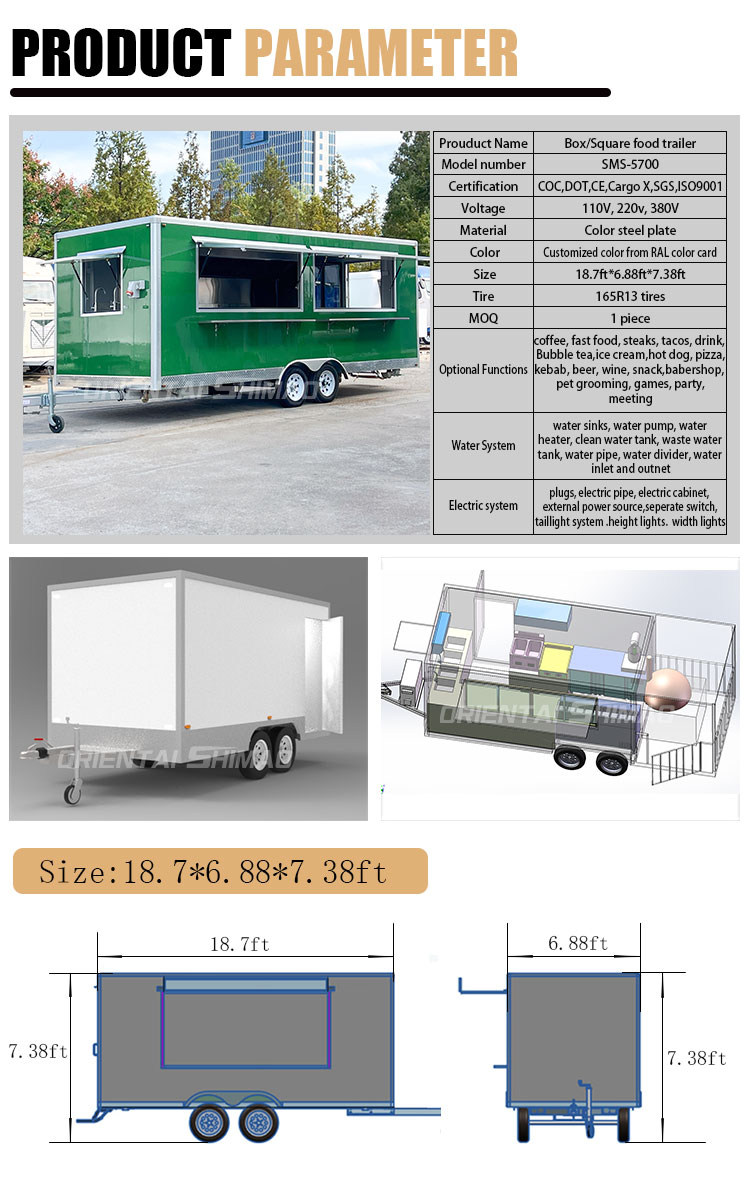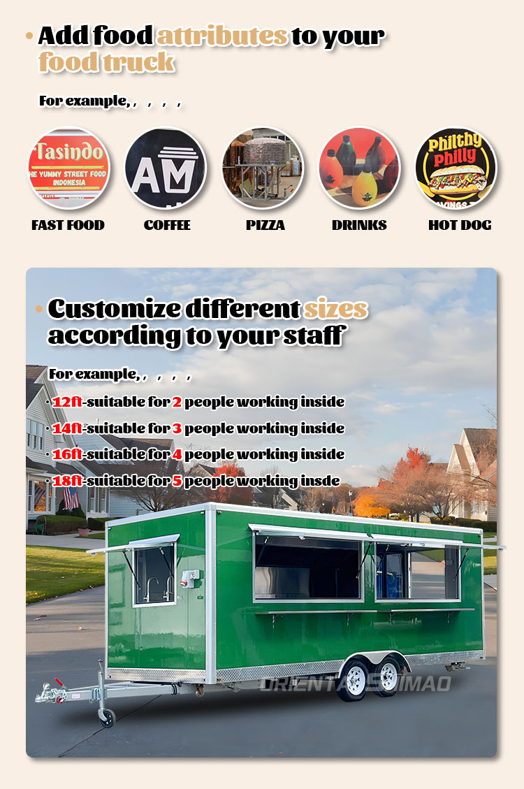 Modellazione e stile: la modellazione e lo stile dell'aspetto del food truck sono un fattore importante per attirare i clienti. Può essere personalizzato in base all'immagine del marchio dei clienti, alle caratteristiche aziendali o alle preferenze personali, come design aerodinamico, stile retrò, semplicità moderna e così via.