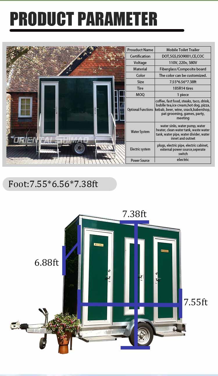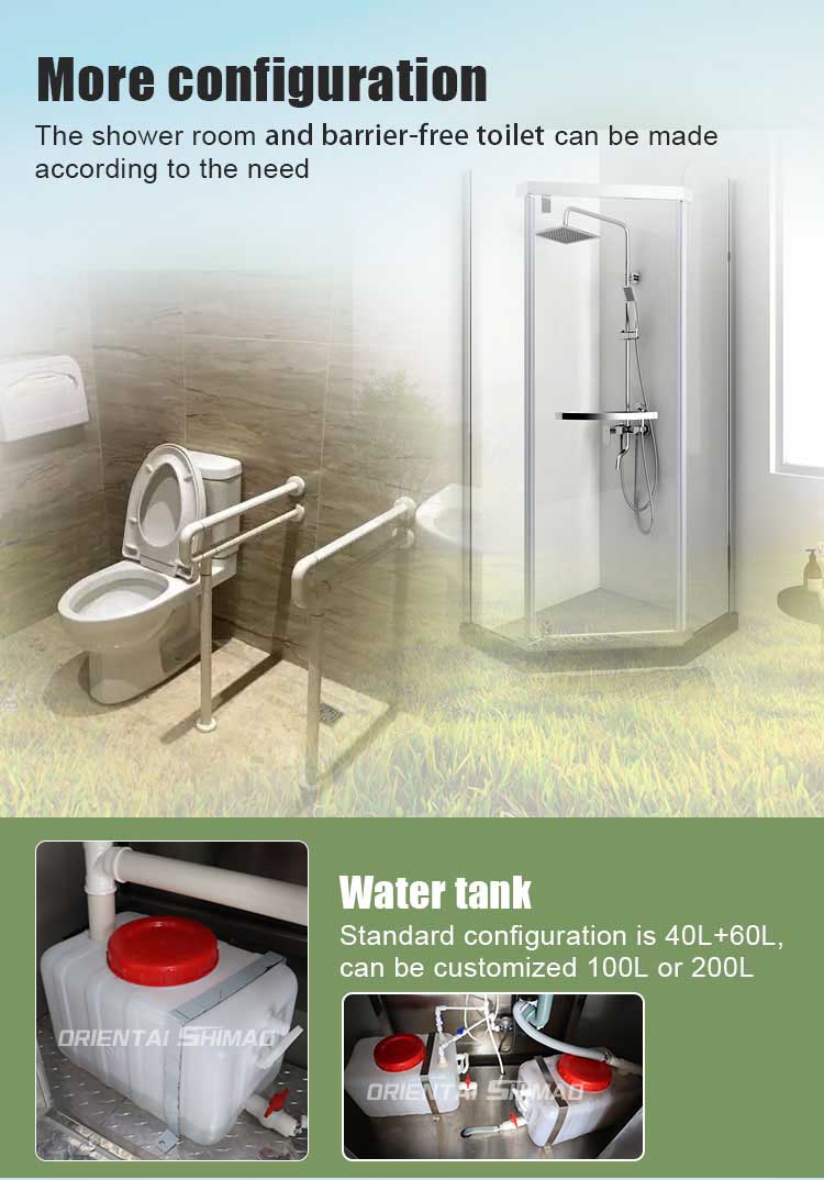Oriental Shimao Mobile Toilet House è la soluzione di igiene ottimale per una vasta gamma di siti esterni, esigenze di strutture temporanee e situazioni di emergenza. Con il suo design moderno e il set di funzionalità eccellenti, non solo offre agli utenti un'esperienza di servizi igienica, ma migliora anche lo standard di igiene dell'intero luogo. Che si tratti di un grande evento, in cantiere o risposta alle emergenze, questo camion per servizi igienici portatile garantisce un ambiente pulito e conveniente.