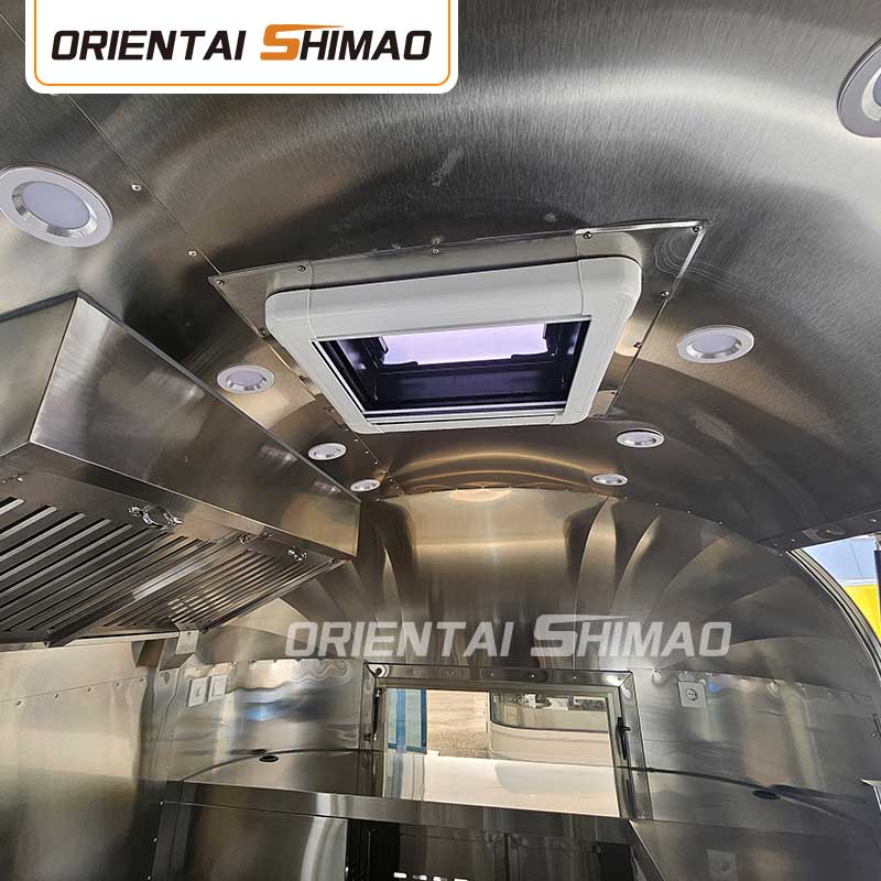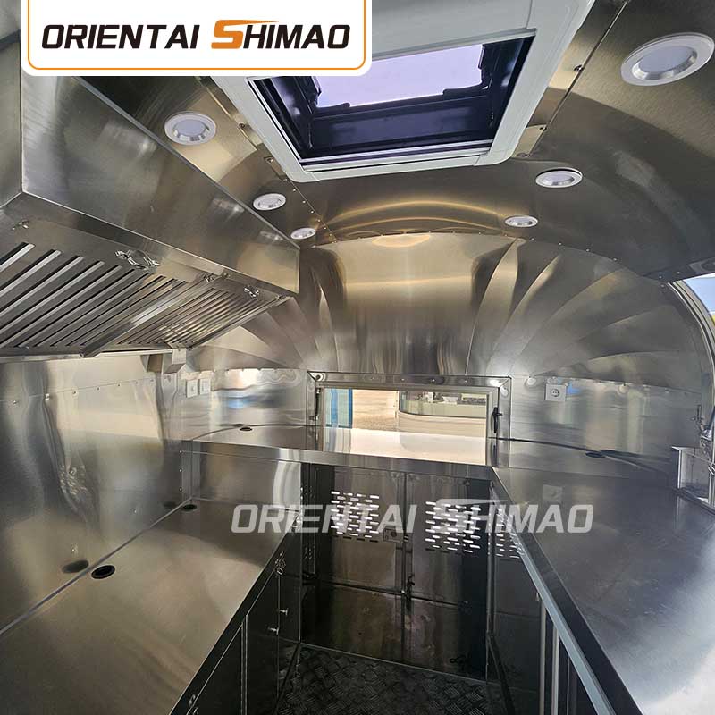 L'interno è completamente attrezzato, tra cui stufe, attrezzature per la frittura profonda, attrezzature di refrigerazione, sistema di cassa, ecc., Per garantire il funzionamento efficiente della produzione e delle vendite alimentari.