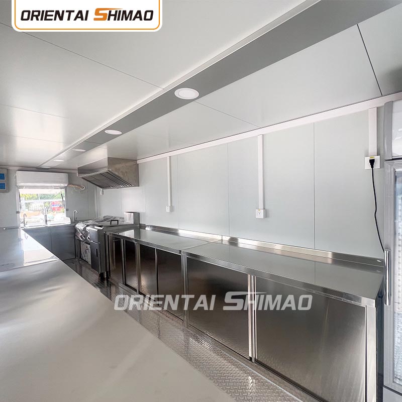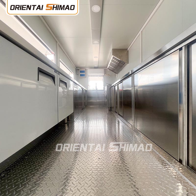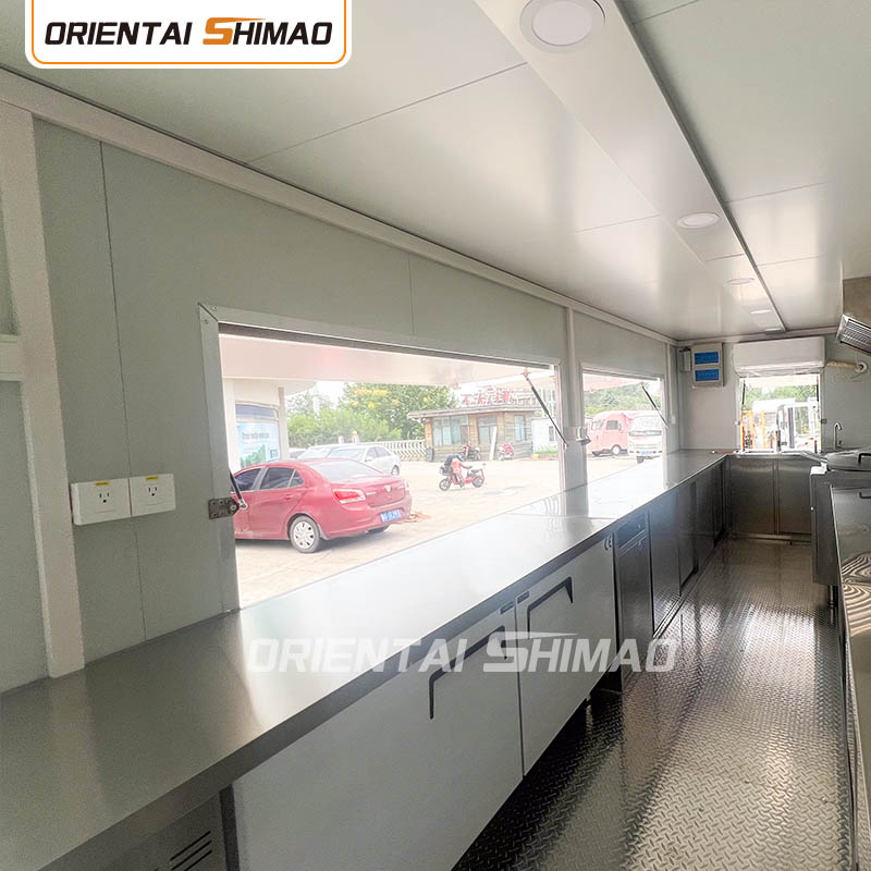 Interno in acciaio inossidabile: l'interno è realizzato in acciaio inossidabile, garantendo un interno resistente e durevole, facile da pulire e mantenere e conforme agli standard di igiene alimentare. L'uso dell'acciaio inossidabile non solo migliora la durata del food truck, ma garantisce anche l'igiene e la sicurezza del processo di preparazione del cibo.