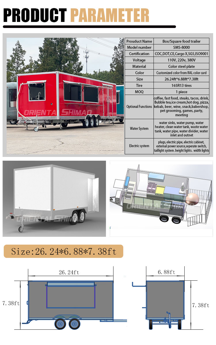 Modellazione e stile: la modellazione e lo stile estetico del food truck sono un fattore importante per attirare i clienti. Può essere personalizzato in base all'immagine del marchio dei clienti, alle caratteristiche aziendali o alle preferenze personali, come design aerodinamico, stile retrò, semplicità moderna e così via.