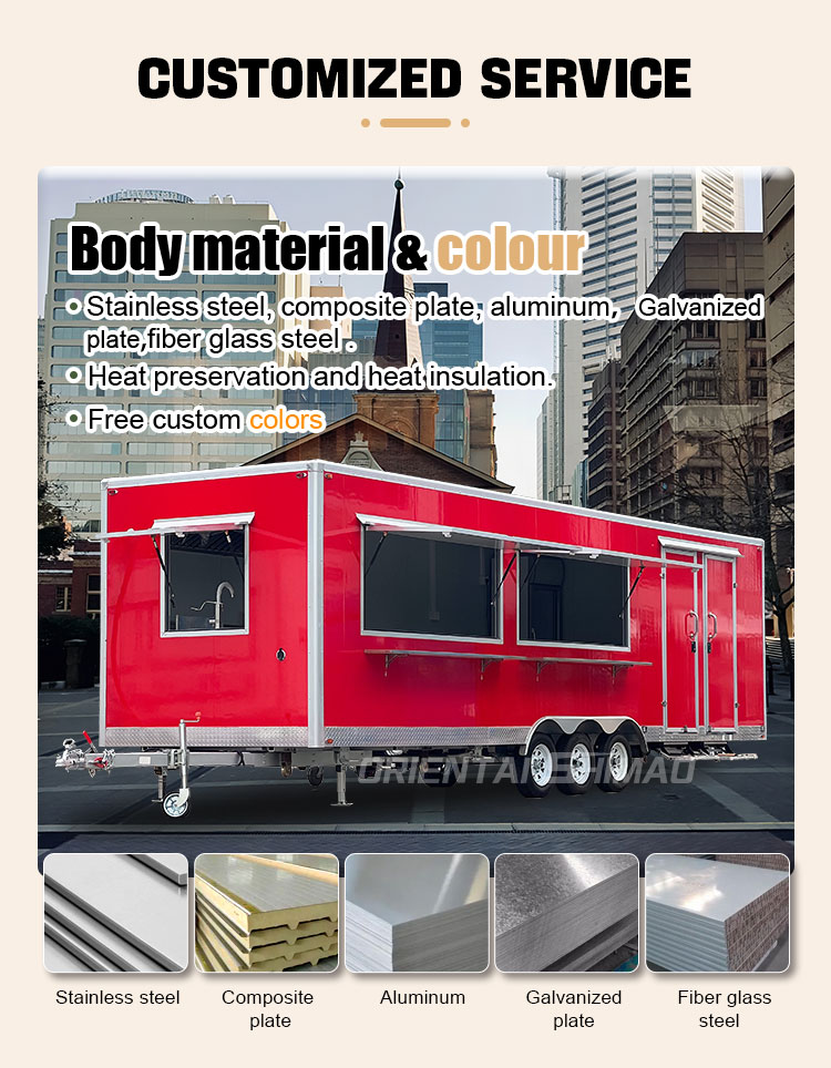 Materiali del corpo: scegli materiali ad alta resistenza, resistenti alla corrosione, facili da pulire e rispettosi dell'ambiente, come acciaio inossidabile, lega di alluminio, ecc., per garantire stabilità, durata e sicurezza del corpo del camion di cibo.