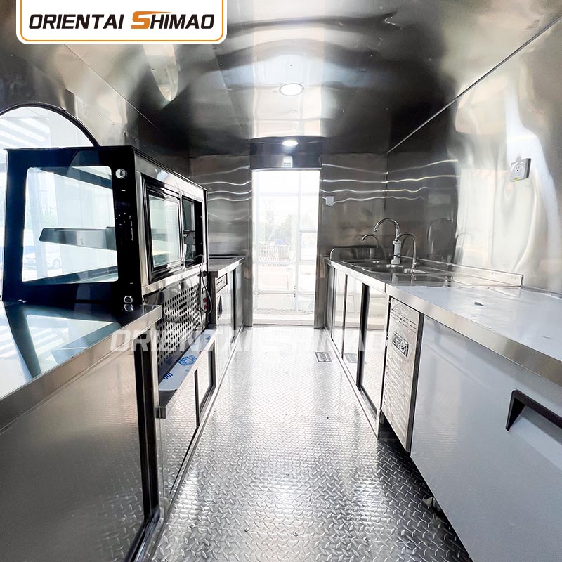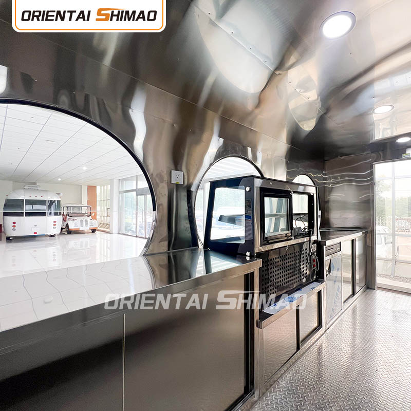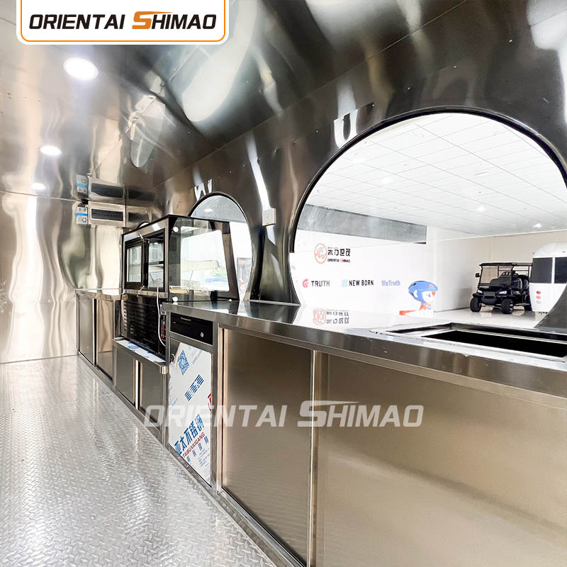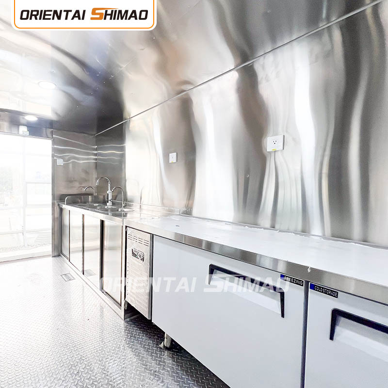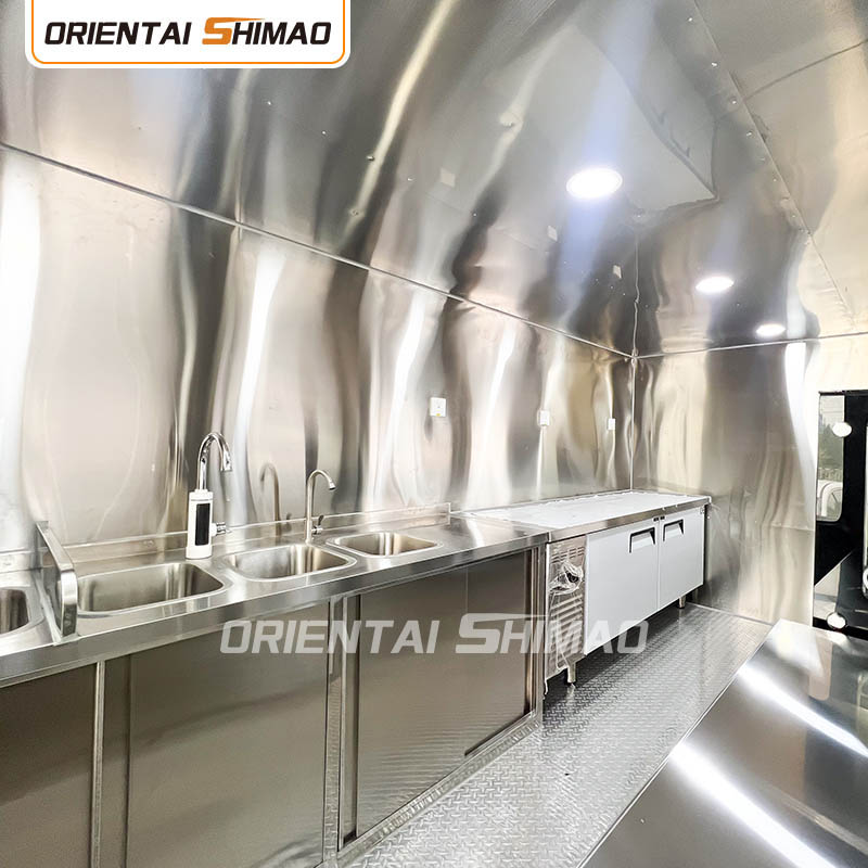 Interno in acciaio inossidabile: l'interno è realizzato in acciaio inossidabile, garantendo un interno resistente e durevole, facile da pulire e mantenere e conforme agli standard di igiene alimentare. L'uso dell'acciaio inossidabile non solo migliora la durata del food truck, ma garantisce anche l'igiene e la sicurezza del processo di preparazione del cibo.