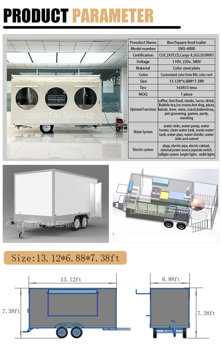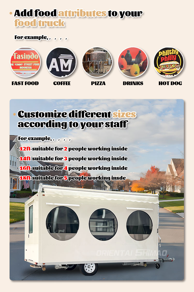 Modellazione e stile: la modellazione e lo stile estetico del food truck sono un fattore importante per attirare i clienti. Può essere personalizzato in base all'immagine del marchio dei clienti, alle caratteristiche aziendali o alle preferenze personali, come design aerodinamico, stile retrò, semplicità moderna e così via.