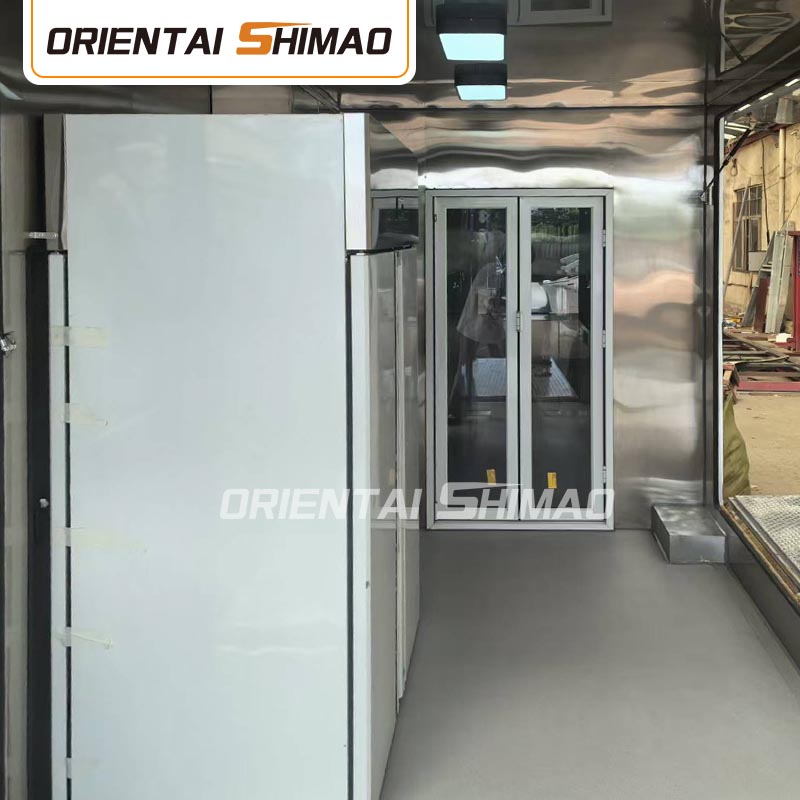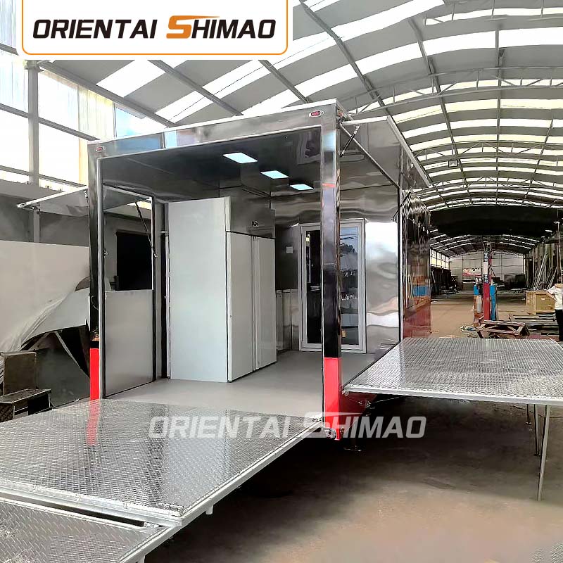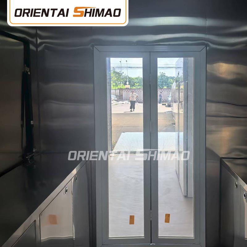 Interno in acciaio inossidabile: l'interno è realizzato in acciaio inossidabile, garantendo un interno resistente e durevole, facile da pulire e mantenere e conforme agli standard di igiene alimentare. L'uso dell'acciaio inossidabile non solo migliora la durata del food truck, ma garantisce anche l'igiene e la sicurezza del processo di preparazione del cibo.