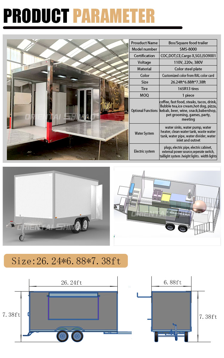 Modellazione e stile: la modellazione e lo stile estetico del food truck sono un fattore importante per attirare i clienti. Può essere personalizzato in base all'immagine del marchio dei clienti, alle caratteristiche aziendali o alle preferenze personali, come design aerodinamico, stile retrò, semplicità moderna e così via.